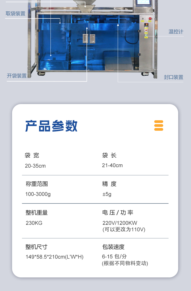 230kg10-20(袋/分鐘)149*59*210厘米(長*寬*高)